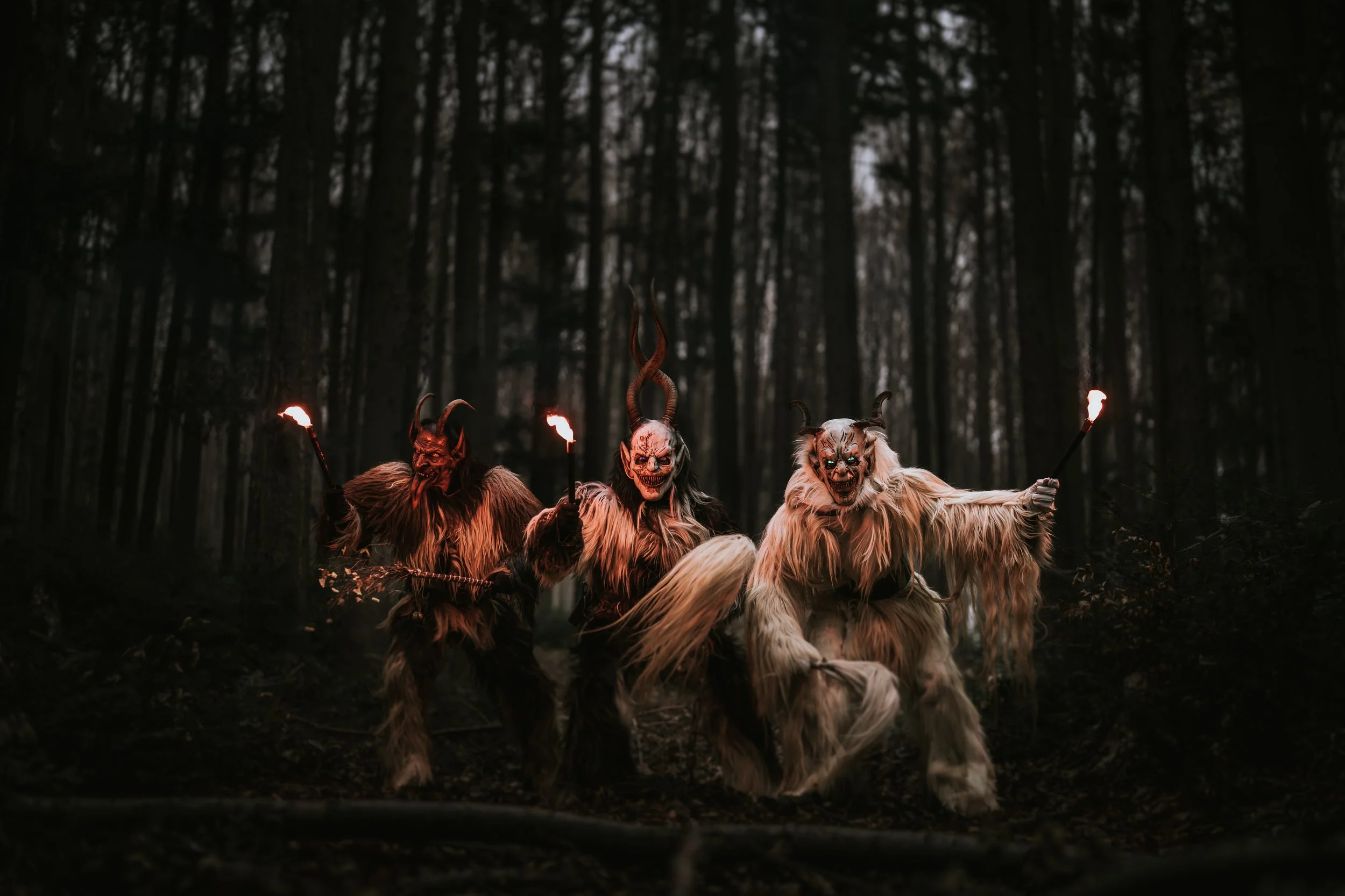 Zentrales Element des Perchtenbrauchtums sind die Perchtenläufe. Dabei ziehen maskierte Gestalten in aufwendigen Kostümen durch Orte und Straßen. Die Masken, auch Larven genannt, sind meist aus Holz geschnitzt und zeigen groteske, dämonische Fratzen mit Hörnern, langen Zähnen und wilden Gesichtszügen. Glocken, Ketten und Peitschen verstärken den ohrenbetäubenden Lärm, der symbolisch den Winter, das Böse und das Unheil vertreiben soll. Gleichzeitig markiert der Lauf einen rituellen Neubeginn und den Übergang in ein neues Jahr.